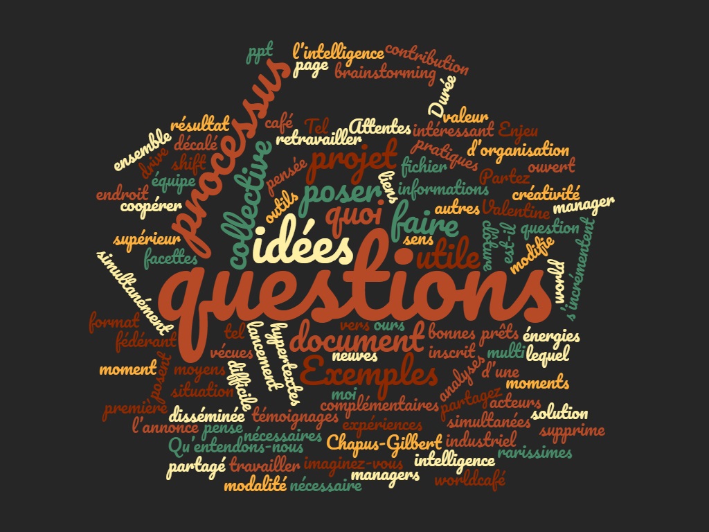 « vous venez de passer 2h30 dans cet atelier pour travailler sur …. Vous avez quitté votre poste pour venir en laissant des choses sur le feu, quel est le retour sur le temps que vous avez investi dans cette réunion, qu’elle soit obligatoire ou non ? »
